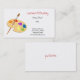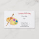 Business cards suitable for any artist or art teacher. This card features a white background with a drawing of a paint pallet and paint brush on the left side. All text is customisable on the front and back and you can add more if needed.