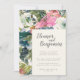 Painterly Botanical Watercolor Pink Green Wedding Invitation
