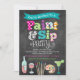 Our bright and colourful Paint and Sip Painting Party Chalkboard style invitation is the perfect invite for any painting and wine event. Our design features a chalkboard background, a mix of fun pattern letters such as polka dots, stripes and chevron, and art illustrations and graphics such as an artist palette, wine bottle, wine glass, and margarita!