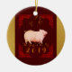 Painting Bamboo Chinese Frame Pig Year 2019 RoundO Ceramic Ornament