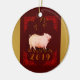 Original painting of a pig and bamboo on transparent background. Design on ceramic round ornament with Chinese frame and dark red background (in front) + golden textured image with wishes (in back). You can easily change text (font, size, colour and position) and colour background by clicking the customise button. Available in oval size. Don't forget the whole collection of greeting cards, postcards and more... Perfect for Chinese and Vietnamese New year of the Pig 2019. --- "The Pig (豬) is the twelfth and the last sign of the Earthly Branches (亥). In the continuous Sexagenary cycle, every twelfth year corresponds to Hai, and is commonly called "the Year of the Pig" (豬年). There are five types of Pigs, named after the Chinese elements. In order, they are: Metal, Water, Wood, Fire, and Earth.