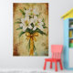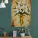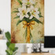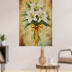 Painting of a bouquet of white lilies with a gold poster