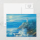 Painting Of A Full Moon Over A Lighthouse Postcard
