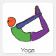 Painting of bow yoga pose with yoga text. Alternately called the Dhanurasana asana. This yoga asana is colourful and whimsical. This design is sure to add an element of fun at your next yoga class. Great gift idea for you or your yoga friends.