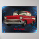 These posters feature my painting of a red vintage car shown on a blue and black abstract background. There is a template placeholder for your optional text, message, in red letters, below the car. Thank you for shopping CherylsArt on Zazzle.