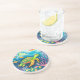 I'm not sure how much moisture these will soak up, haven't had a chance to try them out, but they look good and I like the cork backing. The printing is fine ~ and really looks cool with an artisan's hand made "Hurricane Martini" glass sitting on top of my painting (on the coaster) in my studio.