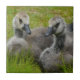 Two fuzzy grey baby geese, nestled in the grass side by side. The Canada Goose is a migratory bird that travels in large numbers, usually making loud honking noises as they fly.