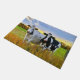 This cow-themed doormat will be a welcoming sight to your guests when they show up for a seasonal autumn visit. It features an image of a pair of black and white Holstein dairy cows in a colourful autumn pasture with a cloudy sky overhead.