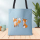A pair of cute cartoon foxes with large ears and bushy tails.