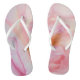 Flip flops with a water color design of a pink rose.