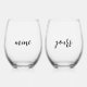 A straightforward way to identify your wine glass. Black script writing of mine vs yours will keep you and your guest from losing track.