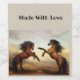 A pair of wild horses rearing with mountains in the background. 100% Customisation. Click on the CUSTOMIZE button to add, move, delete, resize or change any of the fonts or graphics.
