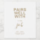 Minimalist "Pairs Well With A New Job" wine bottle label in simple white and gold colour with modern and elegant handwriting typography style. Customise with occasion, year, short message and sender/gifter's name. Change the background colour and/or text colour to suit your preference. Perfect for congratulating new job, promotion, new position or new business.