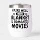 Funny saying - Pairs well with blanket and your favourite movies (change movie genre to suit your requirements) humour wine tumbler from Ricaso - a fun alcohol saying for the movie night. What type of movie will you pair your wine with?