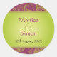 Green paisley designs overprint a rich violet background.The couple's names and event date sits on a lime green gradient panel. Great for a southeast Asian themed wedding or when you want to make a warm, bold statement. Available in alternate colours with matching products.
