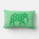 Mixed media digital graphic of an elephant against an arabesque tiled background lumbar pillow - jade green with a white, lacy, paisley pattern