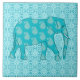 Mixed pattern digital graphic of a richly embellished elephant against an arabesque tiled background - turquoise / peacock blue with a white, lacy, paisley pattern and a turquoise and aqua background