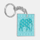 Mixed pattern digital graphic of a richly embellished elephant against an arabesque tiled background - turquoise / peacock blue with a white, lacy, paisley pattern and a turquoise and aqua background