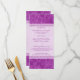 Paisley swirls and flowers in bright purple makes a gorgeous pattern for this wedding menu card. Customised text prints against a light panel accented by borders that echo the background pattern. A lovely addition to any wedding. Use it as a menu or any printed piece you might need for your wedding, shower or engagment party. Customise it with your own menu or other information on the front and add your name(s) and event date or additional menu information on the back against the same pattern. Available in alternate colours with matching products.
