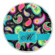 Paisley Monogram Modern Whimsy Black Turquoise Ceramic Knob