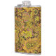 Paisley Motif in Yellow, Brown on Black Background Hip Flask