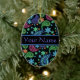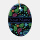 Porcelain Oval Ornament with a colourful paisley and flowers pattern on a black background and customisable text to personalise it.