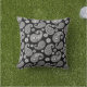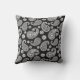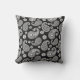 Throw pillow in an ornate paisley pattern in white, accented with graphite grey, on a black background