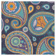 Paisley pattern blue teal orange colour fabric