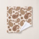 Towel set in an ornate paisley pattern in shades of deep chocolate brown, camel tan and rust, on a light beige background