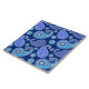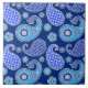 Ornate paisley pattern in shades of deep blue and turquoise, accented with white, on a cobalt blue background
