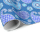 Ornate paisley pattern in shades of deep blue and turquoise, accented with white, on a cobalt blue background