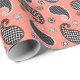 Ornate paisley pattern in classic black and white on a soft coral pink background