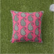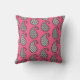 Outdoor pillow in an ornate paisley pattern, in black and white on a deep fuchsia pink background