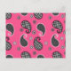 Ornate paisley pattern in classic black and white on a deep fuchsia pink background