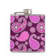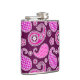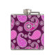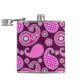 Paisley pattern, fuchsia pink, purple and white hip flask