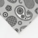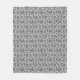 Fleece blanket in an ornate paisley pattern in shades of medium to dark grey, black and white, on a medium silver grey background