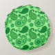 Paisley Pattern, Jade and Emerald Green Round Cushion