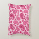 Accent pillow in an ornate paisley pattern in shades of deep fuchsia pink and burgundy, on a pastel coral pink background