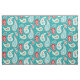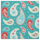 Cute and playful hand drawn paisley floral pattern in vibrant turquoise teal blue, red and light yellow.