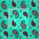 Paisley pattern, turquoise, black and white fabric