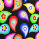 Paisley Peace Signs and Flowers on Black Wallpaper