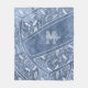 This unique volleyball themed fleece blanket for her with a distressed look, monochromatic dusty blue colour theme features the outline image of a simple, abstractly oversized volleyball that covers the entire blanket - a doodle pattern of paislies, flowers and feathers in white covers all but one of the volleyball's panels - personalise with the athlete's name and monogram, varsity letter or jersey number - by katz_d_zynes