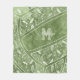 This unique volleyball themed fleece blanket for her with a distressed look, monochromatic sage green colour theme features the outline image of a simple, abstractly oversized volleyball that covers the entire blanket - a doodle pattern of paislies, flowers and feathers in white covers all but one of the volleyball's panels - personalise with the athlete's name and monogram, varsity letter or jersey number - by katz_d_zynes