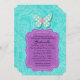 There's a baby girl on the way!! Start your celebration off with this adorable baby shower invitation. It has a bright aqua blue paisley print background. Across the centre on the top is a aqua blue polka dot butterfly. There's a bright purple tag outlined in white in the centre where you personalise with your party information. Check out the other colours and products we offer.