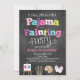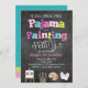 Our original, best-selling, Pajama and Painting Chalkboard style birthday party invitation is the perfect invite for any painting and pajama theme party. Our design features a chalkboard background, a mix of fun pattern letters such as polka dots, stripes and chevron, bunny slippers, an art easel, paint brushes and artist paint palette. Perfect for a fun art theme birthday party!