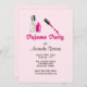 Add whatever you need on back all text and little ballerina picture can be customised. This is set up with an area to add information for donations in lieu of gifts for a birthday party. This can be just a pajama party. You can change or delete the little ballerina from the back and add more event information or your own image.