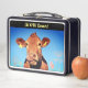 This is a standard metal lunchbox that appears to work just fine. We designed this box ourselves with an uploaded photo and custom text on the front and back. It looks absolutely beautiful except the front of the lunchbox is not centered like it shows in the photo. The print borders don't align with the inset flat part of the box where the preview photo online showed it perfectly centered in there. The back looks nice and centered though.