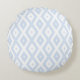 Pale blue and white diamond pattern round cushion
