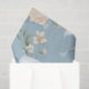 Sweet occasional design with satin ribbons and bows in pale blue and creamy white, amongst nosegays of blue and white flowers.