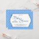 Invite your friends and loved ones with this cute pale blue and white polka dot baby shower invitation.